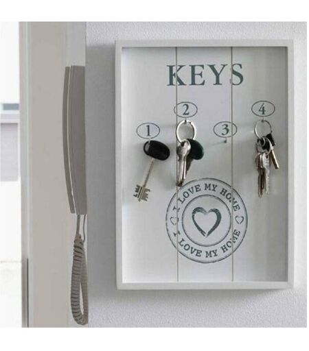 TRADE SHOP TRAESIO - Portachiavi Pannello Appendi Chiavi In Legno 4 Ganci 24 x 32 Cm i Love My Home -
