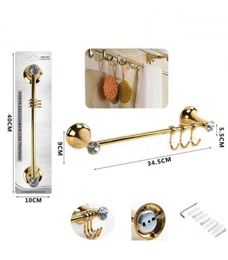 TRADE SHOP TRAESIO - Porta Asciugamani 3 Ganci Supporto Arredo Bagno Casa Cucina Dorato Oro Dgo-097 -