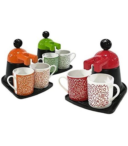 TRADE SHOP TRAESIO - Caffettiera Mini Express Con 2 Tazze In Ceramica Caffe' Colori Assortiti -