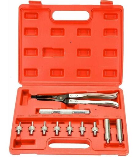 Kit 11PZ sostituzione rimozione installazione valvole stelo adattatori ART.00112Kit per valvole a stelo/Seal Valve ideale sia per la rimozione che per la rettifica e per l installazione. Il kit proposto in una comoda valigetta in abs antiurto è composto da 11 pezzi, una pinza di tenuta, una pinza maniglia, due prese per guarnizioni e sette adattatori sigillo. Il prodotto in questione, interamente in acciaio al carbonio, è destinato sia agli amanti del fai da te che a professionisti. La scanalatura delle punte e la dentellatura della pinza garantiscono una presa facile e sicura, l impugnatura ergonomica e concava ridurrà il rischio di scivolamento in presenza di olio assicurando un installazione molto precisa.Caratteristiche Tecniche:Pinza di tenuta valvola a stelo Lunghezza (mm): 270Pinza Maniglia: Lunghezza (mm): 150Prese per guarnizioni sigillo: Quantità: 2 Diametro (mm): 10 / 12Prese per guarnizioni sigillo: Quantità: 7 Misure (mm): 5 - 5,5 - 6 - 6,5 - 7 8 - 9,5 (3/8) ...
