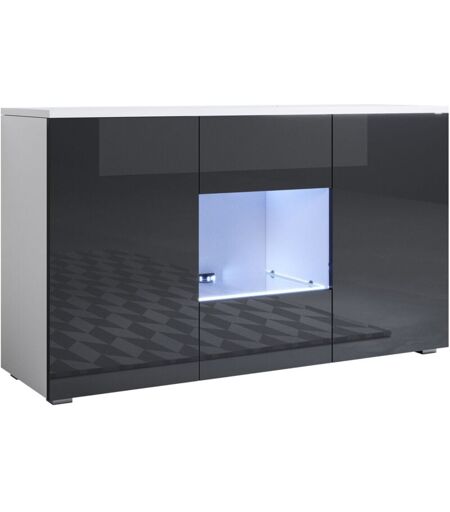 MUEBLES BONITOS Credenza con piedini 2cm 2 ante Luce led Madia Moderna Mobile Sala da Pranzo 120x72x40cm Modello Luke A2 Bianco e Nero Lucido