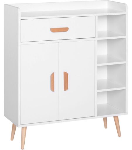 Madia Madia Mobiletto Soggiorno con Piedi in Legno di Pino Bianco 80x29.5x96 cm Vuoi arredare casa tua con un feeling caldo e accogliente? Questo mobile fa al caso tuo. È elegante e perfettamente compatibile con qualsiasi tipo di arredamento. Ai fini pratici, è dotato di un armadietto con ripiano regolabile, 4 cubi aperti, 1 cassetto grande e un ripiano superiore aperto con bordatura, fornendo così un ampio spazio per riporre e organizzare i tuoi articoli per la casa. Coniuga perfettamente bellezza e funzionalità: scegli questa credenza e dai un tocco di stile alla tua casa! Caratteristiche Design contemporaneo con classica finitura bianca, ideale per corridoio, soggiorno, cucina, camera da letto e così via Si può utilizzare come credenza, armadietto e cassettiera 4 cubi di contenimento aperti, un cassetto e un armadietto con ante, adatto anche come scarpiera Armadietto con un ripiano regolabile a 3 livelli a seconda di ciò che deve contenere Il ripiano superiore è aperto con bordi ...