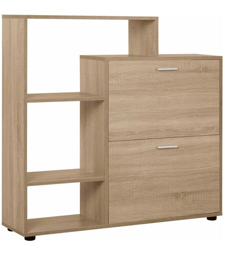 Scarpiera Scarpiera Salvaspazio 20 Paia da Ingresso in Legno Libreria 101.5x25.5x98 cm Troppe scarpe e nessun posto dove raccoglierle e organizzarle tutte? La scarpiera salvaspazio è in grado di risolvere il tuo problema e sarà una gradevole aggiunta alla stanza, diventando il luogo dove potrai riporre le tue scarpe e mantenere l'ambiente in ordine e pulito. I 3 ripiani con scaffali aperti e gli scomparti della scarpiera possono contenere fino a 20 paia di scarpe. Il ripiano superiore può essere usato come spazio espositivo per soprammobili, foto incorniciate e oggetti collezione. I ripiani della scarpiera possono essere regolati per soddisfare le diverse esigenze di contenimento e organizzazione. Realizzato in truciolare di alta qualità classe E1 rivestito con melamina, per un uso prolungato negli anni e una facile manutenzione. Caratteristiche 3 ripiani con scaffali aperti e scarpiera a 2 scomparti chiusi per riporre fino a 20 paia di scarpe. Divertitevi ad usare il ripiano ...