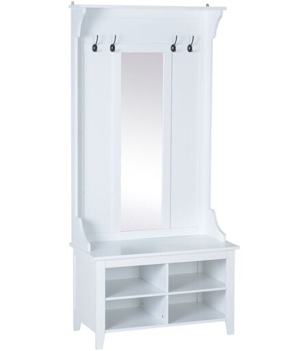 BENZONI Mobile Ingresso con Appendiabiti Specchio e Scarpiera in Legno Bianco 80x40x170 cm