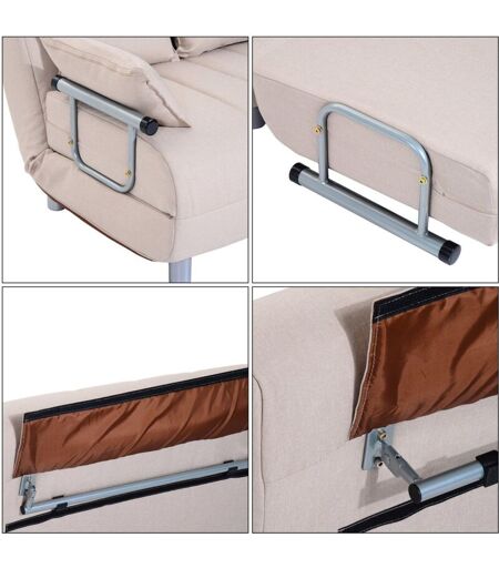 BENZONI - Divano Letto 2 Posti Letto 1 Piazza ½ in Acciaio e Tessuto con 4 Cuscini Crema