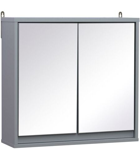 BENZONI Specchio Armadietto da Bagno Pensile Doppia Porta con Ripiano Regolabile Grigio 48x14.5x45 cm