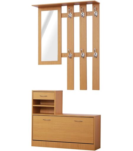BENZONI - Mobile Guardaroba per Ingresso con Specchio Appendiabiti e Scarpiera Regolabile in Legno
