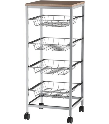 BENZONI Carrello da Cucina con Cesti Estraibili in Acciaio e Ruote 36.5x36.5x89 cm