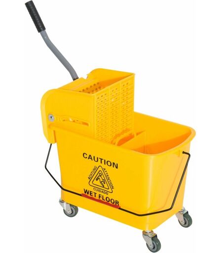 Carrello Pulizie Carrello Pulizie Secchio 20L con Separatore Acqua e Strizzatore Rimovibile 60x27x70.5 cm Il nostro carrello con strizzatore è perfetto per un pulizia del pavimento professionale e a casa ed è anche utile per strizzare il mop senza sporcasi le mani. Dispone di un secchio grande che all'interno è suddiviso in 2 parti per separare l'acqua sporca da quella pulita. E' facile da trasportare e maneggievole negli spostamenti grazie alle 4 rotelle pratiche e alla comoda maniglia. Realizzato in plastica di elevata qualità, super duraturo e resistente. Il manico in metallo con impugnatura antiscivolo garantisce il lavoro in piena sicurezza e comodità. Descrizione: Carrello vasca con strizzatore, ideale per una pulizia agevole ed efficace dei pavimenti. Il secchio grande è suddiviso in 2 parti grazie a un pannello rimovibile nel mezzo. Realizzato in plastica resistente con manico robusto in metallo. Impugnatura in gomma antiscivolo per un utilizzo in piena sicurezza e comodità. ...