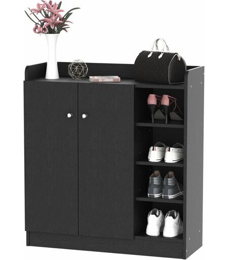 BENZONI Scarpiera Mobiletto in Legno 4 Ripiani Nero 83x30x90 cm