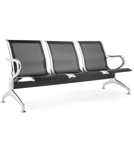 TOSINI Panca per Sala Attesa 3 Posti in Acciao da Ufficio Nero