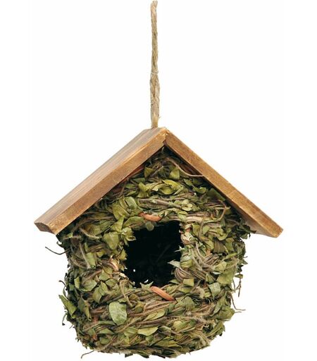 RAMA - Casetta per Uccellini 18x18x17 cm con Foglie e Tetto in Legno