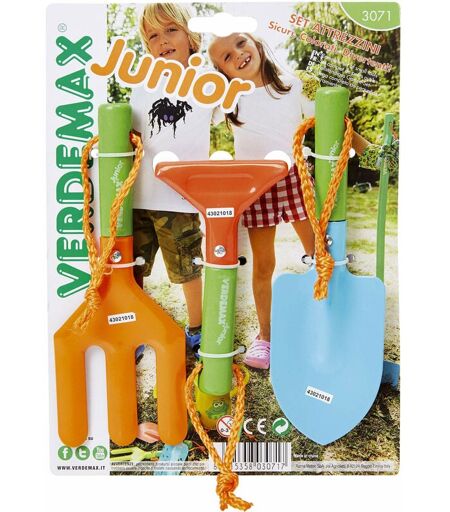 Attrezzi Giardinaggio Set 3 Attrezzi da Giardinaggio per Bambini con Manico Corto Rama Verdemax Il set comprende 3 pezzi: una paletta, una forca e un rastrello In confezione Blister ...