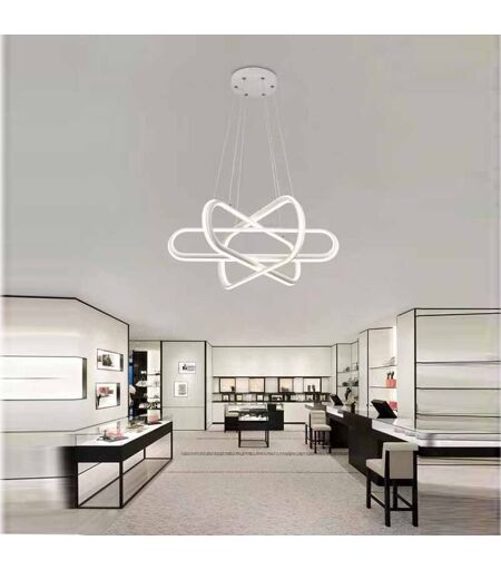 Lampadario da soffitto bianco a led dal design ultramoderno e dalla forma intrecciata, perfetto per conferire un tocco di originalità al tuo arredamento. Dispone di led dalla potenza e consumo di 94 watt totali che emettono una luce potentissima a 360°. Potenza e Consumo 94 watt Flusso luminoso 7520 lm Gradi Kelvin: luce naturale 4000k - Grado di protezione ip20 Colore Bianco Dimensioni 1100x600mm ( altezza regolabile) - Base 180x35mm Tensione d'ingresso ac220-240v 50/60hz ...