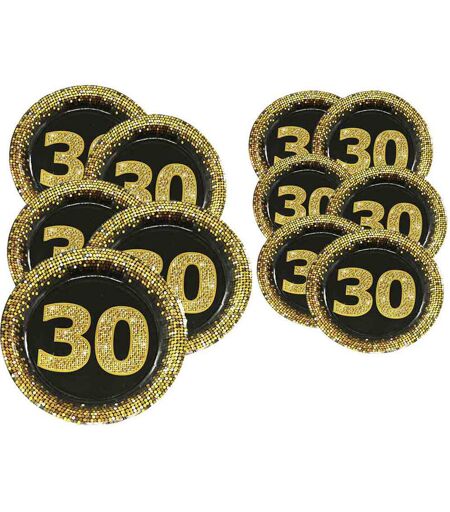 VETRINEINRETE - Set 28 Piatti di Carta per Feste di Compleanno 30 40 50 Anni Decorazioni per Party Nero e Oro 30 Anni