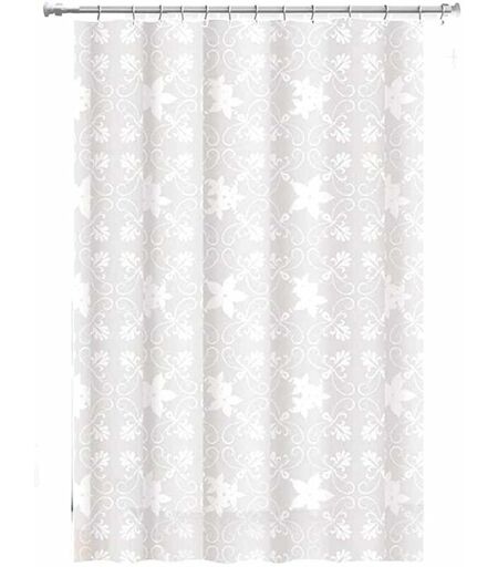 Tenda da doccia e da vasca da bagno realizzata in tessuto 100% eva impermeabile all'acqua, dotata di 12 ganci in plastica per poterla appendere all'asta della doccia e con bordi preforati per essere installata in modo facile e veloce. Di colore bianco Decorazione floreale. Dimensioni: H 200 x L 240 cm Peso: 380 grammi ...