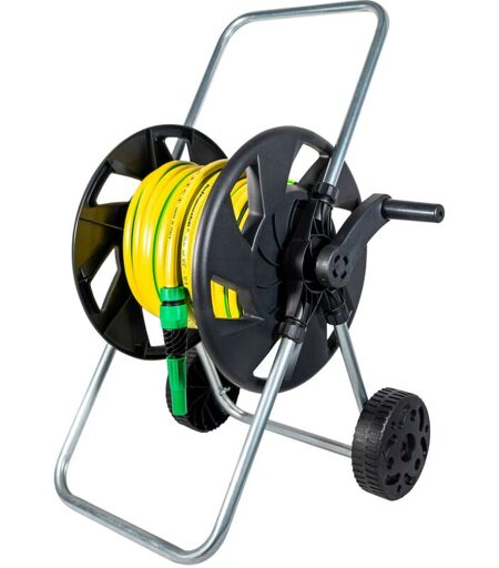 GIORDANOSHOP - Carrello Avvolgitubo Manuale in Acciaio con Tubo 25 mt e Accessori Agrati Nero