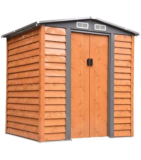 Casetta Casetta Box Da Giardino 197,5x160x178-201 cm in acciaio e Polipropilene Marrone Questa casetta da giardino è la perfetta unione di stile e praticità. Resistente a ogni stagione, questo capanno porta attrezzi è realizzato in acciaio e polipropilene, con una elegante finitura effetto legno. Le porte scorrevoli ti permettono di entrare e uscire facilmente, per riporre tutti i tuoi utensili e accessori per il giardino. Le prese d'aria assicurano una ventilazione ottimale e il tetto inclinato evita l'accumulo di acqua piovana. AMPIO SPAZIO PER RIPORRE: La nostra casetta da giardino offre tanto spazio per riporre i tuoi utensili, attrezzi e accessori da giardino. L'effetto legno aggiunge un tocco naturale. ACCIAIO DI QUALITÀ: Realizzato con un telaio in acciaio galvanizzato di qualità, il capanno attrezzi è resistente e durevole nel tempo. DOPPIA PORTA SCORREVOLE: Entra ed esci facilmente dalla casetta porta attrezzi grazie alla pratica doppia porta scorrevole, dotata di blocco per ...