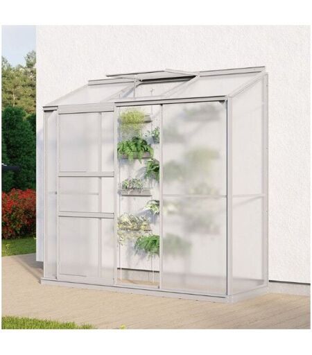Serra da Parete Serra da Parete Vitavia Ida 1300 69x193x182 cm in Alluminio Anodizzato e Policarbonato Con il suo ingombro ridotto e la piena altezza in posizione eretta, la serra addossata Ida può essere utilizzata anche in cortile, in terrazza o sul balcone, ideale per il giardinaggio, la coltivazione di erbe e ortaggi nonché lo svernamento di piante in vaso ad alto fusto. I modelli Ida sono disponibili in alluminio anodizzato, verniciato a polvere nero o verde smeraldo e sono ricoperti da lastre a due pareti di 4 mm di spessore in policarbonato stabilizzato ai raggi UV. I modelli più grandi 5200, 6500 e 7800 sono disponibili con lastre di spessore 4 mm o 6 mm. Il tetto di questi modelli è ricoperto da lastre di 6 mm. IDA 900 e 1300 hanno una porta scorrevole a scorrimento con una larghezza di 61 cm e un'altezza di 151 cm. I modelli dal 3300 al 7800 hanno una doppia anta scorrevole con una larghezza di 122 cm e un'altezza di 163 cm. La grondaia fa parte della dotazione standard. I ...