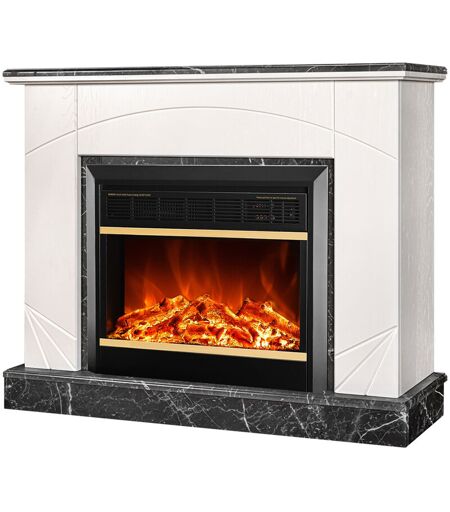 GIORDANOSHOP Camino Elettrico da Pavimento 85x110x27 cm Effetto Fiamma 1500W Madeira lux & Mars Ivory/dark gray