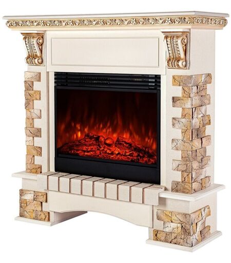 GIORDANOSHOP Camino Elettrico da Pavimento 118,1x123x40,3 cm Effetto Fiamma 1950W Topaz maxi & Mirabella Avorio