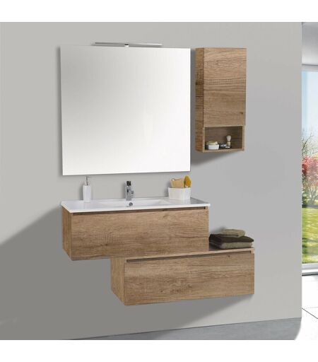 Mobile da Bagno Mobile da Bagno Sospeso 100cm Pensile P18cm Mazzoni Boston 15 Noce Chiaro Frassinato Arredo bagno moderno completo di base sospesa porta lavabo con 1 cassetto apertura a gola chiusura soft più una base chiusa con 1 cassetto apertura a gola chiusura soft.. Caratteristiche tecniche Mobile da Bagno Sospeso - 1 Base porta lavabo con 1 Cassettone apertura a gola e chiusura soft close (LxAxP): 100 x 36 x 45 cm - 1 Base con Top, 1 Cassettone apertura a gola e chiusura soft close (LxAxP): 100 x 36 x 45 cm - Lavabo in ceramica (LxP): 100 x 46 cm - 1 pensile ad 1 anta destra con vano a giorno (LxAxP): 35 x 80 x 18 cm - Specchio (LxA): 100x95 cm reversibile - Lampada a LED: 50 cm N.B. Rubinetteria NON INCLUSA . ...