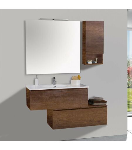 Mobile da Bagno Mobile da Bagno Sospeso 100cm Pensile P18cm Mazzoni Boston 15 Noce Scuro Frassinato Arredo bagno moderno completo di base sospesa porta lavabo con 1 cassetto apertura a gola chiusura soft più una base chiusa con 1 cassetto apertura a gola chiusura soft.. Caratteristiche tecniche Mobile da Bagno Sospeso - 1 Base porta lavabo con 1 Cassettone apertura a gola e chiusura soft close (LxAxP): 100 x 36 x 45 cm - 1 Base con Top, 1 Cassettone apertura a gola e chiusura soft close (LxAxP): 100 x 36 x 45 cm - Lavabo in ceramica (LxP): 100 x 46 cm - 1 pensile ad 1 anta destra con vano a giorno (LxAxP): 35 x 80 x 18 cm - Specchio (LxA): 100x95 cm reversibile - Lampada a LED: 50 cm N.B. Rubinetteria NON INCLUSA . ...