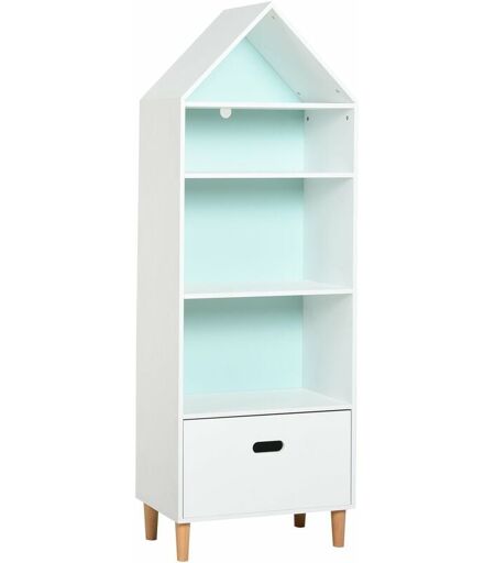 BENZONI Libreria 4 Ripiani 1 Cassetto 50x30x142 cm Bianco e Azzurro