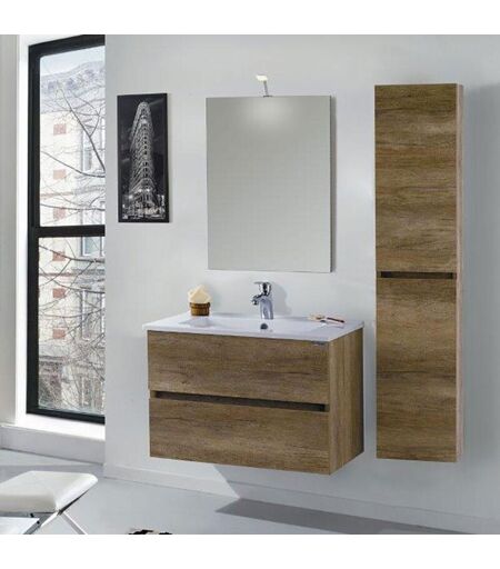 Arredo bagno moderno completo di base sospesa con cassetto soft close, lavabo, specchiera, mobile a colonna e lampada Eco LED. Set Composto da: - Base con cassetto soft close (LxAxP): 90 x 50 x 45 cm - Lavabo in ceramica (LxP): 91 x 46 cm - Mobile colonna sospeso (LxAxP): 35 x 160 x 32 cm - Specchio su pannello (LxA): 80x60 cm - Lampada Eco LED: 30 cm N.B. Rubinetteria NON INCLUSA. ...