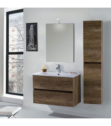 MAZZONI - Mobile da Bagno Sospeso 100cm Colonna P32cm Maiorca Light Noce Scuro Frassinato