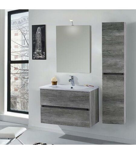 Arredo bagno moderno completo di base sospesa con cassetto soft close, lavabo, specchiera, mobile a colonna e lampada Eco LED. Set Composto da: - Base con cassetto soft close (LxAxP): 90 x 50 x 45 cm - Lavabo in ceramica (LxP): 91 x 46 cm - Mobile colonna sospeso (LxAxP): 35 x 160 x 18 cm - Specchio su pannello (LxA): 80x60 cm - Lampada Eco LED: 30 cm N.B. Rubinetteria NON INCLUSA. ...