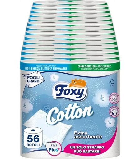 REPLOOD Foxy Cotton Carta Igienica 5 Veli 56 Rotoli 115 Strappi per Rotolo Extra Large