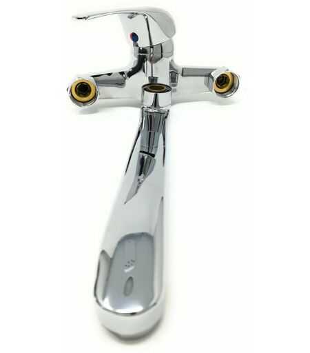 Questo rubinetto a muro è semplicissimo da montare ed è adattabile sia per un lavello a muro da cucina che in bagno per la vasca. Questo prodotto viene fornito senza istruzioni, l’estetica può variare in base alla disponibilità di magazzino, il materiale è ottone, il colore è cromato, dal foro di uscita al foro di entrata della canna vi sono circa 22 cm, il peso è di circa 600 gr, il passo d’attacco dei tubi è 3/4, la distanza dei fori nel muro da rispettare è di circa cm 15 (centro tubo) ricordando inoltre di mantenere il livello tra i due punti ed il 90° dalla parete. ...