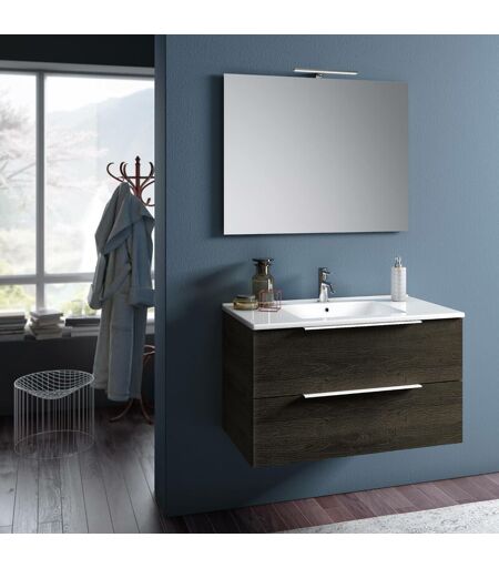 TFT HOME FURNITURE - Mobile da Bagno Sospeso con Lavabo Specchio e Lampada a led tft Luna Rovere Wengè