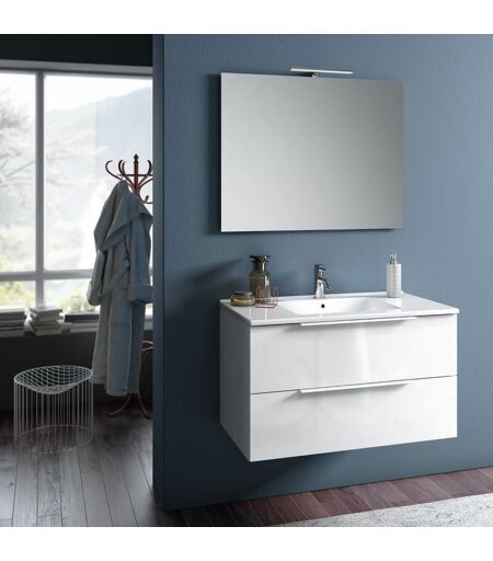 TFT HOME FURNITURE Mobile da Bagno Sospeso con Lavabo Specchio e Lampada a LED TFT Luna Bianco Lucido