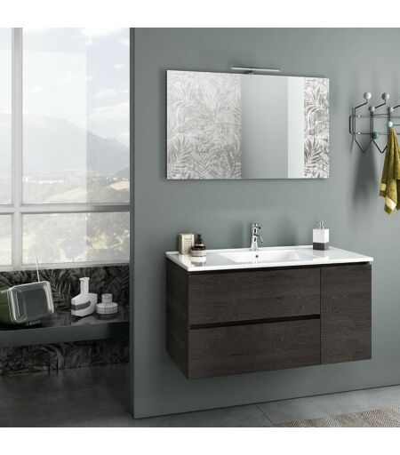 TFT HOME FURNITURE Mobile da Bagno Sospeso con Lavabo Specchio e Lampada a led tft Febe Rovere Wengè