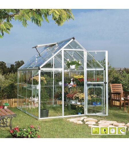 Serra da Giardino Serra da Giardino in Alluminio Base in Acciaio e Pannelli in Policarbonato Rama Verdemax Doritis Maxi La serra Doritis è ideale per l'hobbista più esigente, in quanto unisce qualità e bellezza con una notevole durata nel tempo. Caratteristiche Tecniche Struttura in Alluminio Anodizzato Ideale per l'hobbista più esigente, in quanto unisce qualità e bellezza con una notevole durata nel tempo Porta ad apertura laterale e finestrino sul tetto a vasistas Base di appoggio in acciaio zincato compresa nella struttura Superficie coperta 4,58 mq Pannelli in policarbonato trasparenti. Filtrano il 99% dei raggi dannosi Resistenza al vento fino a 90 Km/h. Resistenza carico neve 80 Kg/mq Imballo in due cartoni, uno per la struttura e uno per i pannelli 1 x cm 62 x 120 x 10 - 1 x cm 18,5 x 267 x 10,5 Ripiani e scaffali, all'interno della serra, non inclusi Dimensioni: 185x248xh209 cm ...