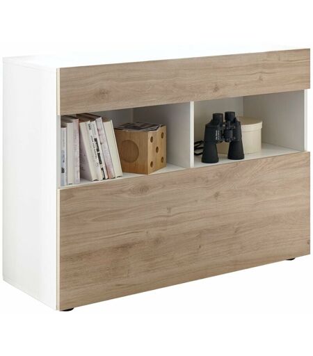 TFT HOME FURNITURE Credenza Mobile Soggiorno 1 Anta 2 Vani 111x42x82 cm tft Akira Bianco e Naturale