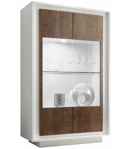 TFT HOME FURNITURE - Mobile Vetrina 2 Ante 106x50x171 cm in Legno tft Frame Bianco e Rovere