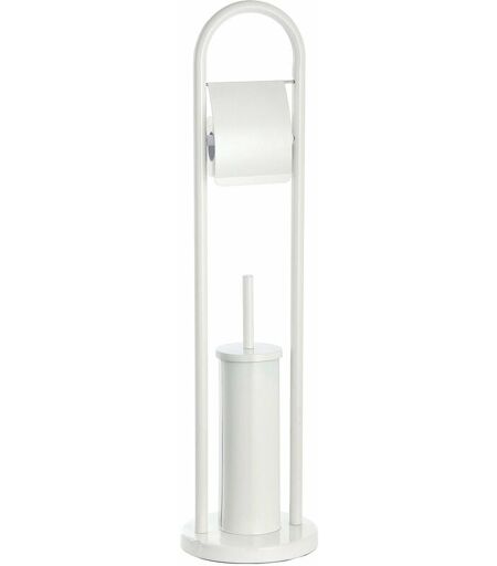 GIORDANOSHOP Piantana Porta Rotolo e Porta Scopino in Acciaio Fadi Bianco