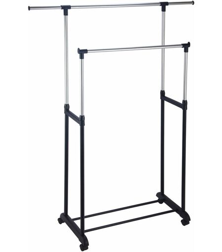 GIORDANOSHOP Stender Doppio Porta Abiti Estensibile in Acciaio con Ruote 125x170x42 cm Fadi Nero e Acciaio