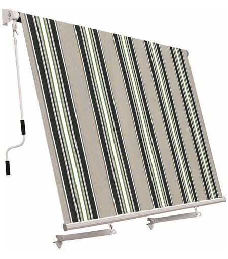 Tenda da Sole Tenda da Sole a Caduta con Bracci 250x300 cm Tessuto in Poliestere Riga Verde Tenda a caduta c/bracci H. 250 L. 300 colore - Riga Verde rullo alluminio diam. 60 mm - attacco a parete, copertura in poliestere, asta di manovra da 150 cm ...