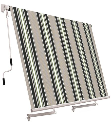 Tenda da Sole Tenda da Sole a Caduta con Bracci 245x245 cm Tessuto in Poliestere Riga Verde Tenda a caduta c/bracci H. 245 L. 245 colore - Riga Verde rullo alluminio diam. 60 mm - attacco a parete, copertura in poliestere, asta di manovra da 150 cm ...