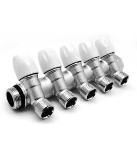 TIEMME - collettore lineare in ottone cromato modello maxima con rubinetto d'arresto 3/4'X1/2' 5 vie raccorderie spa