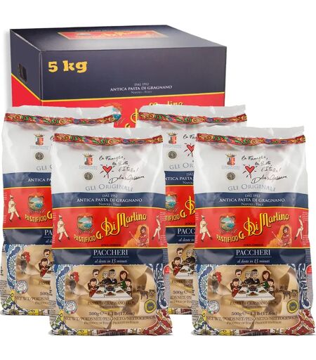Paccheri 5kg Maxi Formato Antica Pasta di Gragnano Igp Pastificio Di Martino Confezione 10 Pezzi da 500Gr Eccellenza della Campania 100% Grano Italiano Idea Regalo ...