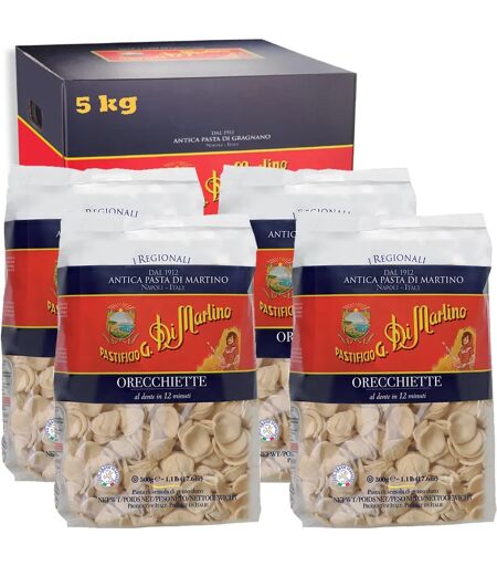 Orecchiette 5kg Maxi Formato Antica Pasta di Gragnano Igp Pastificio Di Martino Confezione 10 Pezzi da 500Gr Eccellenza della Campania 100% Grano Italiano Idea Regalo ...