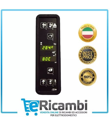 Scheda tastiera display led verticale Micronova C024, 2 righe, 4 digit per Stufa Pellet Caratteristiche: Riferimento PC024_C01 Tastiera display LED Micronova C024 Contenitore: da incasso verticale Tasti: 6 a pulsante Interfaccia: led 2 righe 4 digit Dimensioni: 170x53x24 mm Dettagli La tastiera display LED PC024_C01 della MICRONOVA collegata tramite cavo flat cod. 14710013 alle schede di controllo, permette tramite i 6 tasti di programmare i parametri operativi e visualizzare le funzioni della scheda elettronica termoregolatrice. Tramite la consolle è possibile impostare in modo veloce i parametri di: - accensione e spegnimento - regolazione della potenza di lavoro - regolazione della temperatura di lavoro - correzzione carico pellet - programmazione termperatura ambiente - abiltazioni uscite - check up di funzionamento ecc... Il display a due righe visualizza inoltre i parametri di funzionamento impostati o variati dall'utente/installatore ed eventuali codici allarmi. Monta su stufe ...