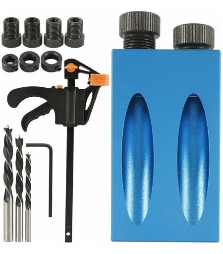 AHLSEN Dima per foratura angolata da 15 pezzi con punte da 15°, posizionatore da carpentiere, dima per fori tascabili, guida per foratura angolare in legno