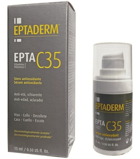 EPTADERM EPTA C35 SERUM - Siero antiossidante e anti - age schiarente. EPTA C35 è un siero ultra - concentrato formulato per ottenere una eccellente prevenzione, protezione e correzione dei danni cutanei. La sua formula favorisce la sintesi di collagene, combatte l'invecchiamento prematuro della pe… ...