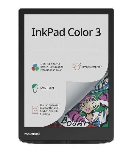 PocketBook InkPad Color 3 Stormy Sea, 19,8 cm (7.8"), E Ink, ACSM, AZW, AZW3, CBR, CBZ, CHM, DOC, DOCX, DjVu, EPUB, EPUB DRM, FB2, FB2.ZIP, HTM, HTML, MOBI,..., M4A, M4B, MP3, OGG, BMP, JPEG, PNG, TIFF, 32 GB ...